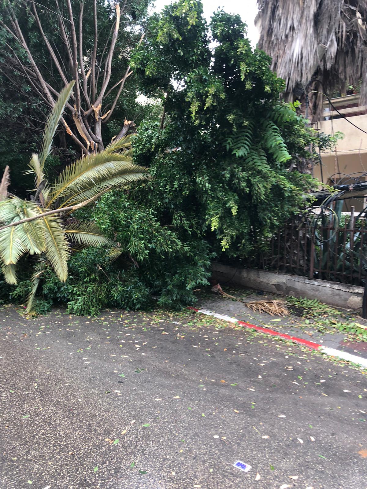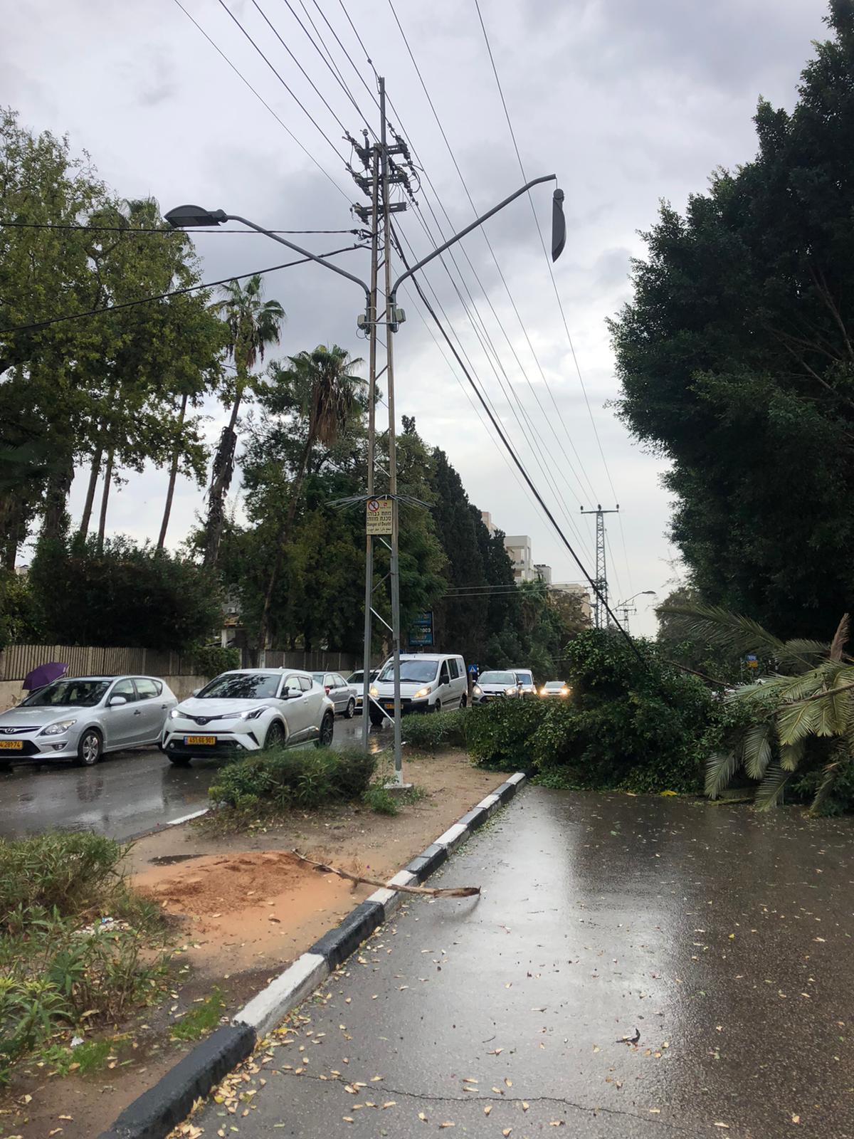 הסערה מכה גלים, לאחר שעדי ראיה במקום הבחינו בעץ עם כבל חשמל שקרסו על הכביש ברחוב מנוחה ונחלה פינת בר שאול, כתוצאה מכך כל הכביש מצפון לדרום סגור. הסערה ממשיכה להשתולל ברגעים אלה וכוחות רבים מגיעים למקום. חברת החשמל זומנה בהתאם, השיטור העירוני וסיירת המוקד העירוני במקום על מנת לאבטח את ביצוע העבודות בצורה בטוחה ומהירה. אגף הגנים מטפל בגיזום העץ שנפל בהקדם האפשרי.