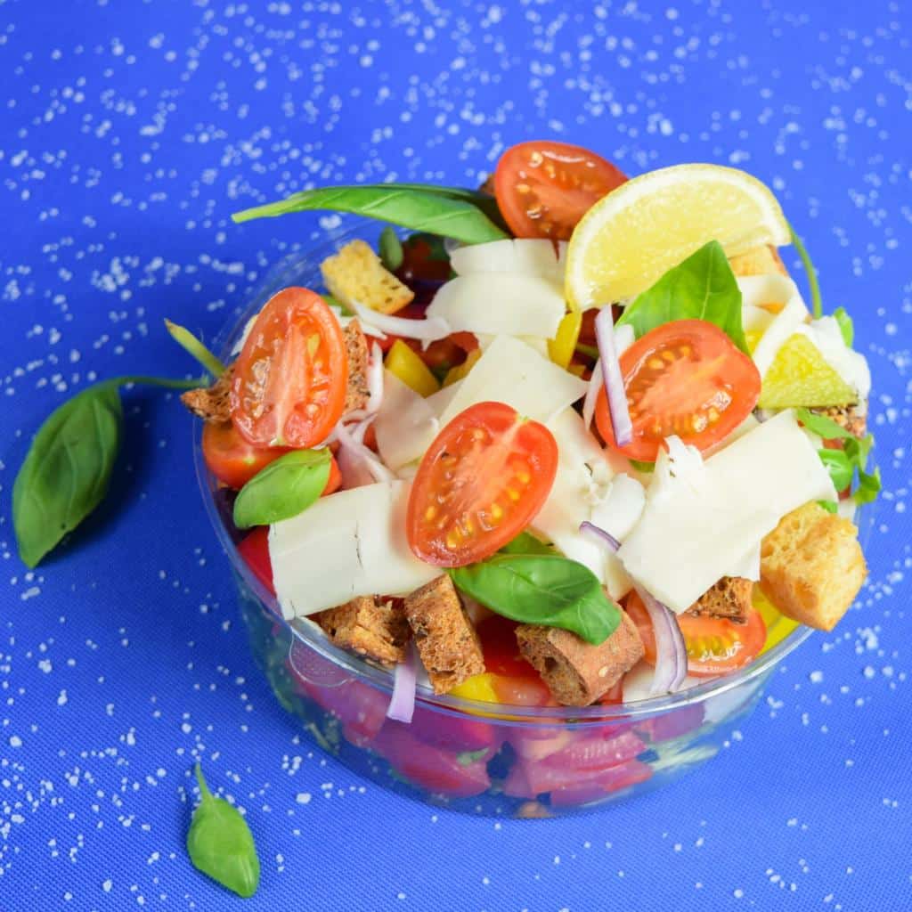 חלף עם הטונה-סלט טונה עם טוויסט בעלילה, עגבניה, מלפפון ובצל ירוק.