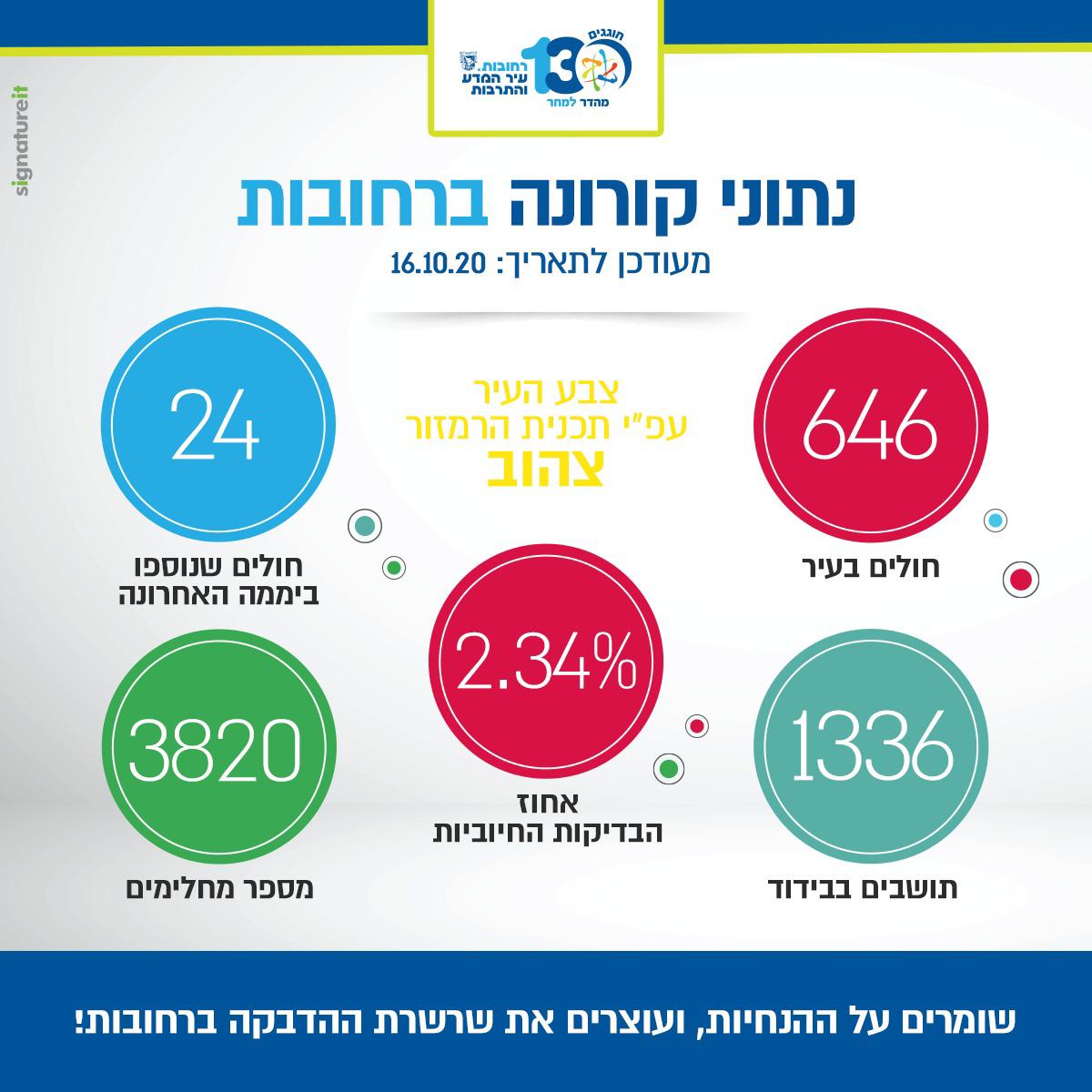 ביומיים האחרונים עיריית רחובות פתחה את מתחם הבדיקות העירוני באתר הפרדסנות במתכונת Drive-In, לבאים ברכב, לתושבים שבקשו להיבדק ללא הפנייה מרופא/ה. בתוך יומיים נבדקו כ1550 איש. למעשה, באמצעות מבצעי הבדיקות היזומות שמנגישה העירייה לתושבים ניתן לגלות חולים "סמויים", המדביקים אחרים ללא ידיעה ובכך להוריד את שיעור התחלואה בעיר, ולקטוע את שרשרת ההדבקות.