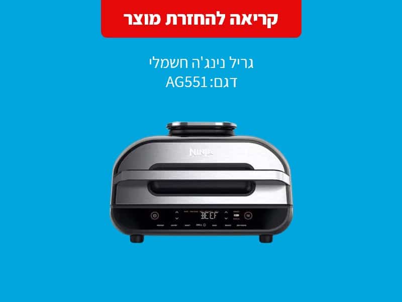קריאה לתיקון מוצר (ריקול): גריל נינג'ה חשמלי (מיועד לרוכשים באתר האינטרנט "הצלצול" בלבד)
