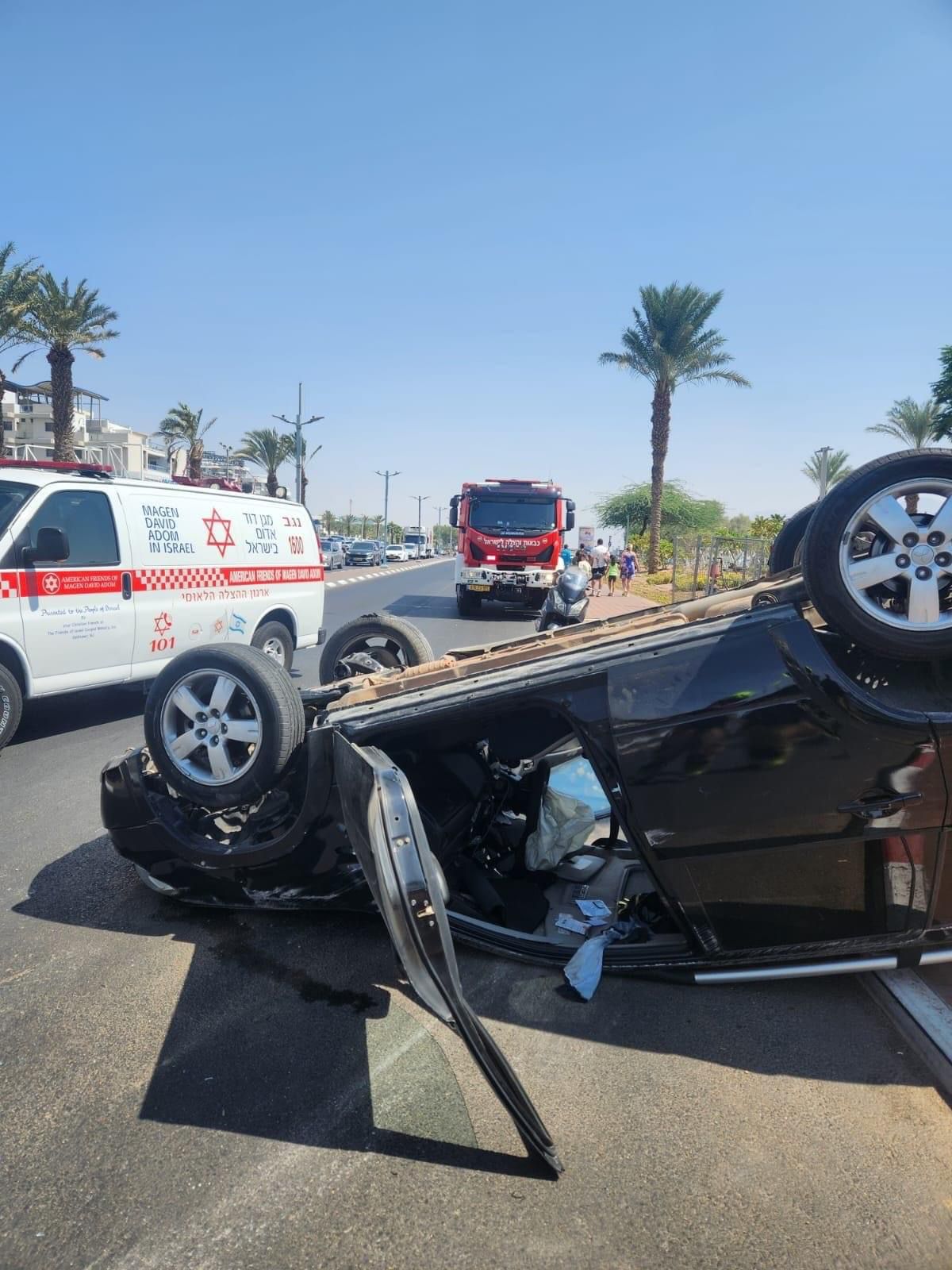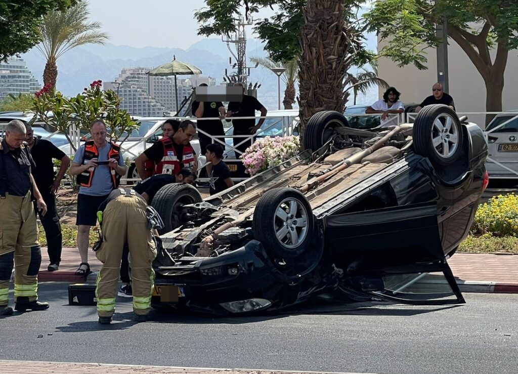כוחות רפואה והצלה הוזעקו לפני זמן קצר אל דרך הערבה באילת בעקבות דיווח על רכב שהתהפך ופצוע במקום.