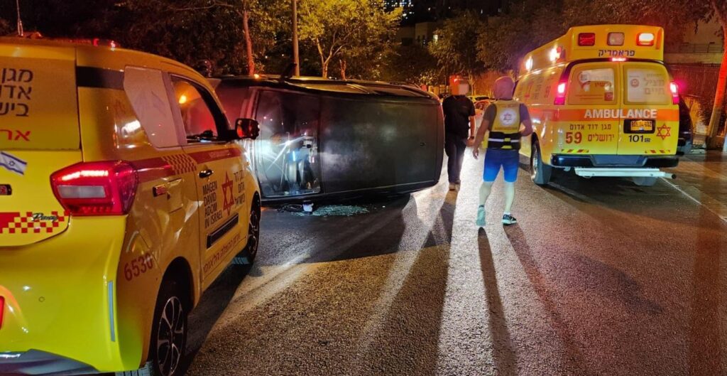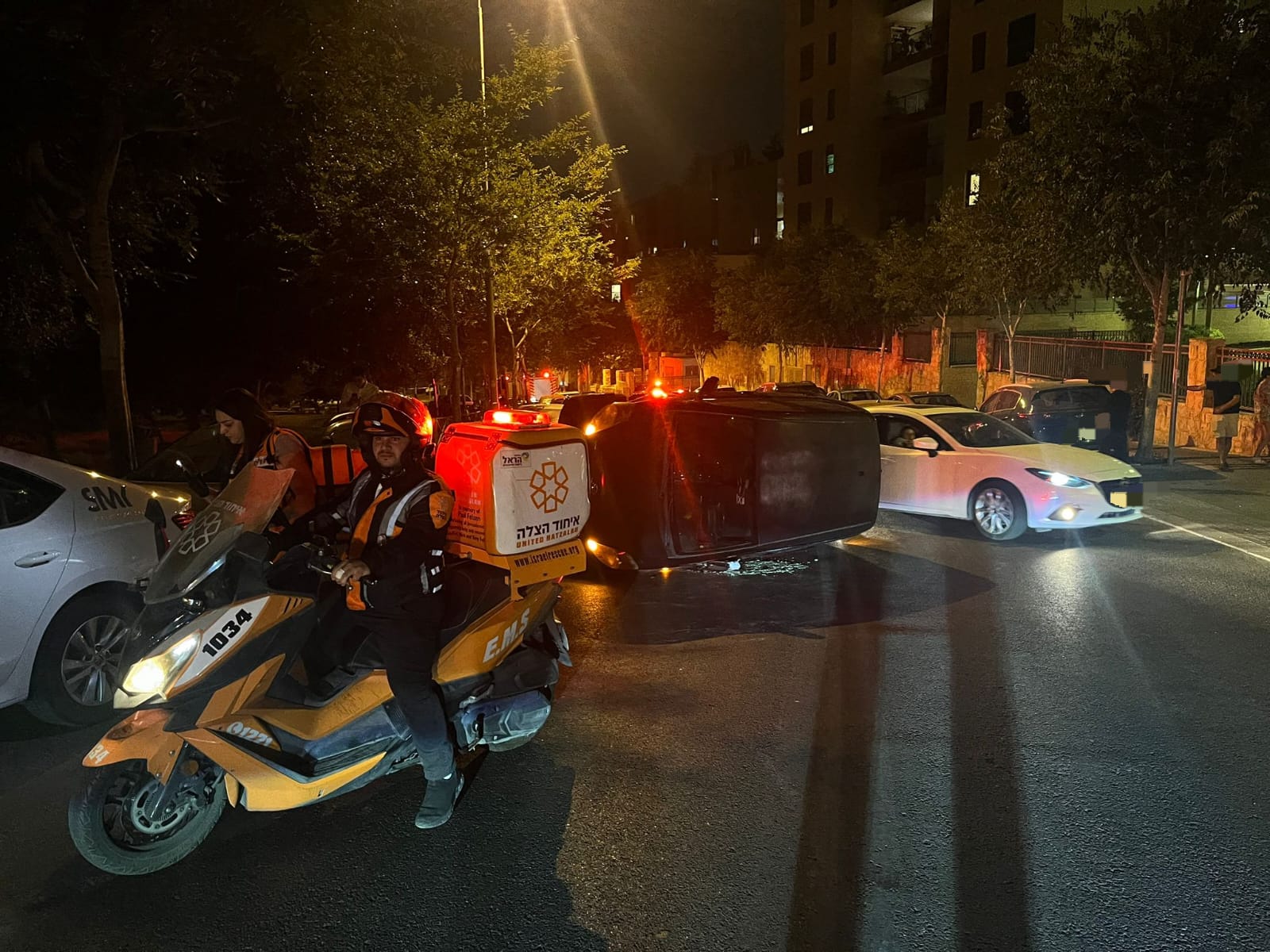 אמש התקבל דיווח במוקד 101 של מד"א במרחב ירושלים על רכב שהתהפך בדרך כרמית בירושלים.