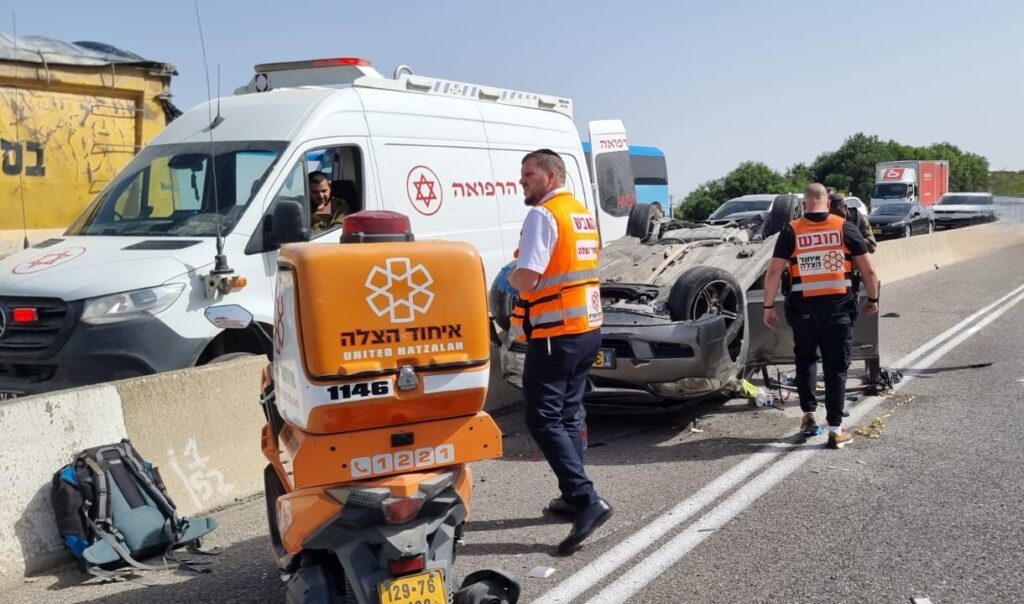 רכב התהפך בכביש 4 סמוך לצומת מבקיעים