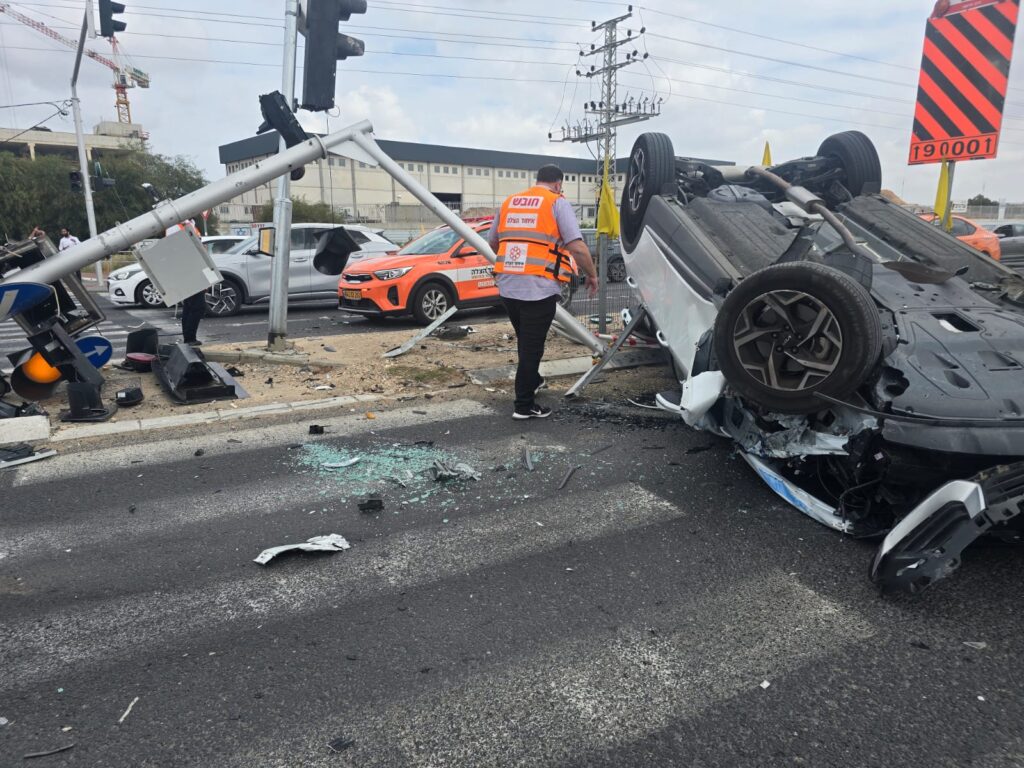 רכב התהפך בצומת ברנר כביש 40 לפני זמן קצר [חמישי] בזירת תאונת דרכים עצמית.