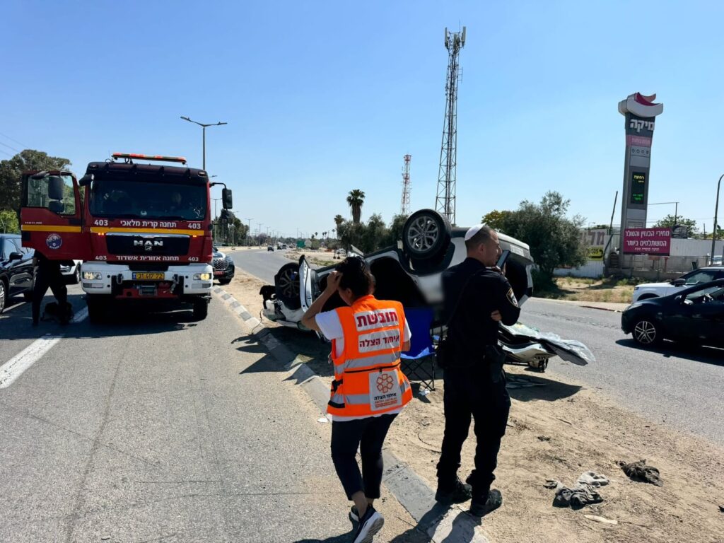 צוותי הרפואה של איחוד הצלה העניקו טיפול רפואי לנהגת רכב בת 24 שנפצעה במצב קל לאחר שרכבה התהפך בתאונת דרכים בין שני כלי רכב בצומת הכניסה לקרית מלאכי.