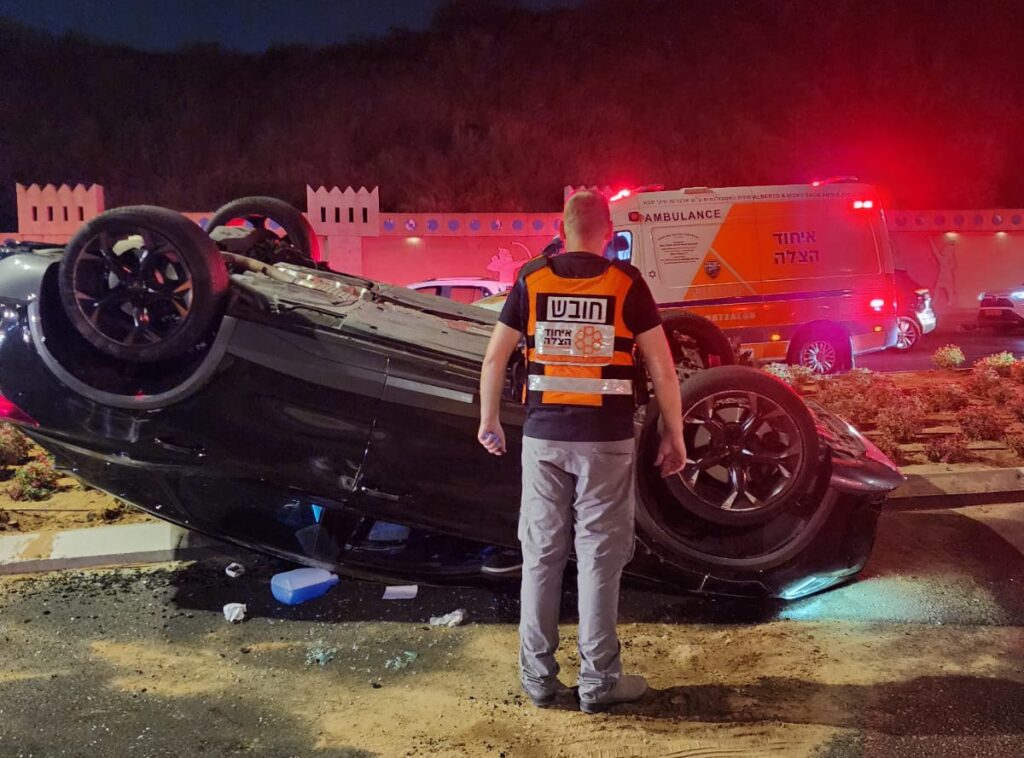 צוותי הרפואה של איחוד הצלה העניקו סיוע בזירה לנהג הרכב שהתהפך, כבן 40, שמצבו מוגדר קל.