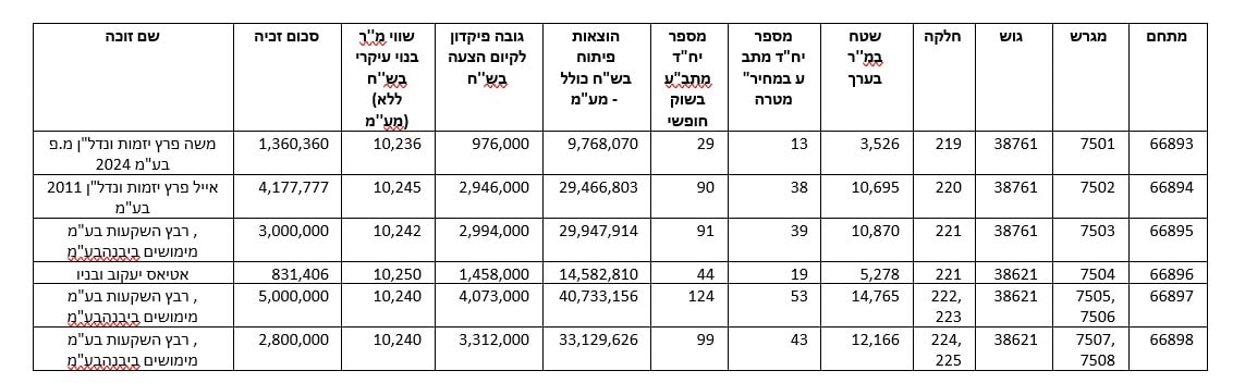 להלן טבלה המתארת את תוצאות המכרז: