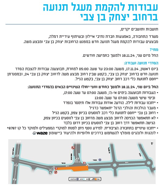 עיריית רמלה, בשיתוף משרד התחבורה וחברת נתיבי איילון, יוצאת בפרויקט לשדרוג תשתיות התחבורה בעיר כחלק מתוכנית תחבורתית רחבה שנועדה לייעול והסדרת התנועה ברמלה ובסביבתה. במסגרת זו תוקם כיכר חדשה במפגש הרחובות יצחק בן צבי ומבצע משה, לצד שדרוגים נוספים בתשתיות תחבורה ובנוף העירוני.