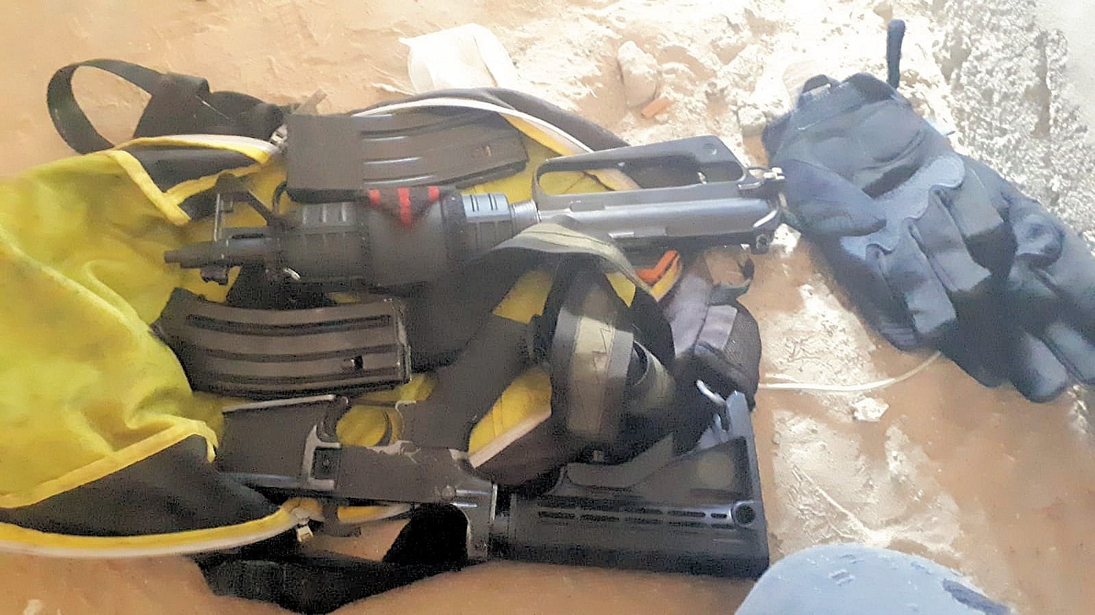 במהלך חיפוש שנערך במתחם באחת מהשכונות בעיר, מצאו בלשי המשטרה, שוטרי היס"מ וכוחות מיוחדים של משמר הגבול בסיוע כלבנים, רובה סער מסוג M16, מחסניות ותחמושת, כשהם מוסתרים.