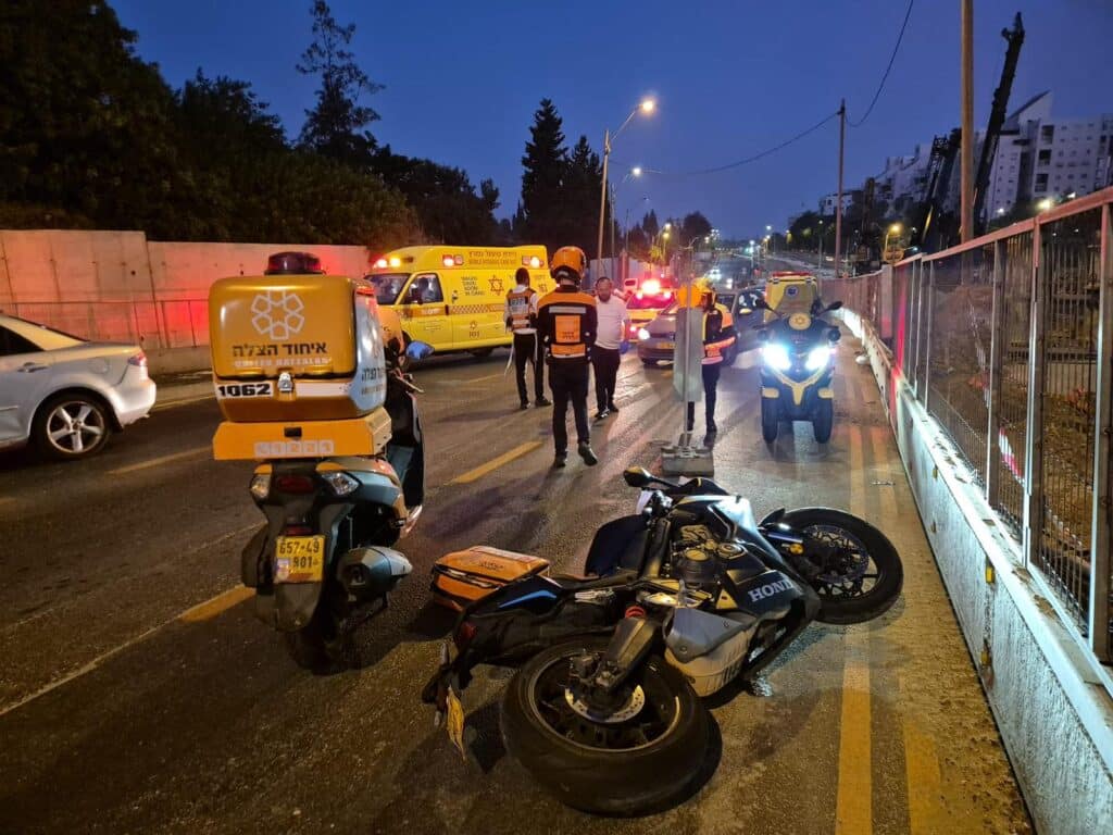 "מדובר ברוכב אופנוע שלדברי עוברי אורח החליק ונחבל בראשו ובגפיו. בסיוע חובשים נוספים הענקנו לו סיוע רפואי ראשוני בזירה ולאחר מכן הוא פונה לבית החולים שיבא בתל השומר כשמצבו מוגדר בינוני".