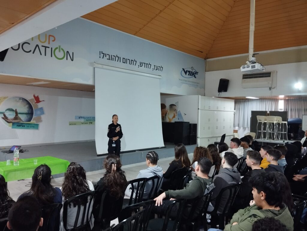 הרצאה מעוררת השראה נערכה לתלמידי ביה״ס אורט רבין גן יבנה עם רפ"ק מאלי שושנה, רפ"ק מאלי שושנה שחיסלה ארבעה מחבלים בקרב הממושך שהתנהל בתחנת המשטרה בשדרות