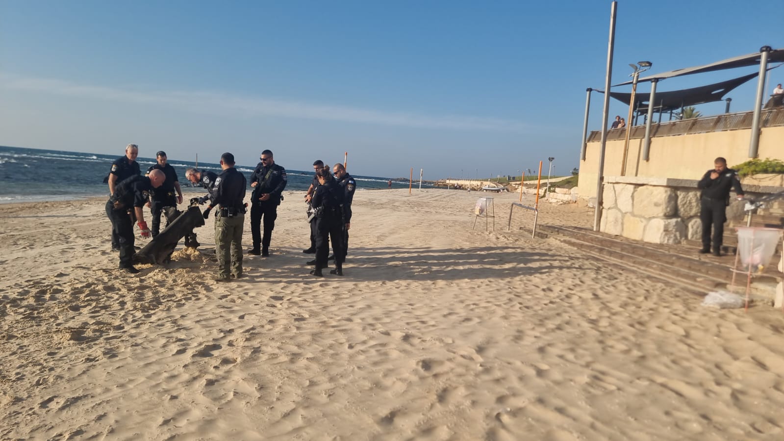 המשטרה מטפלת כעת במספר זירות בתחומי מחוז ת"א, בהן נפלו רסיסים של פריטי רקטה ללא נזק לרכוש וללא נפגעים – בהן בחוף הים