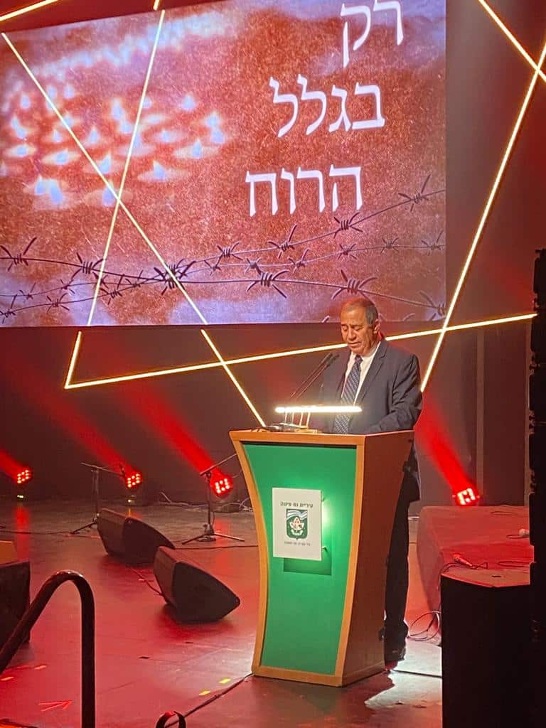 ראש העיר שמואל בוקסר: "אנו עומדים כאן היום להזכיר את הגיבורים שחרפו נפשם ואלו שקמו מחורבותיו של העולם הישן, ששרדו את התופת, קמו מעפר והתחילו מחדש מתוך תקווה וחרדה. ובזכותם אנו חיים כאן היום, במדינה השוקקת, החזקה ומלאת החיים. נזכור ולא נשכח, נהיה להם לפה ונזעק, לעולם לא עוד."