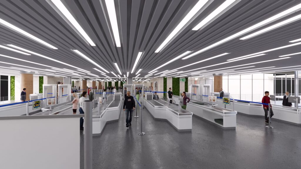 מכרז אחד עוסק בהרחבת שטחי ביקורת הגבולות לנוסעים החוזרים ארצה. הפרויקט כולל הוספת שטח של כ-7,000 מ”ר על פני ארבע קומות, שיאפשרו הגדלת מספר עמדות הביקורת ושדרוג מערכות טכנולוגיות. כמו כן, ייבנה מבנה חדש בשם “שער תל אביב”, בשטח של כ-2,000 מ”ר, שישמש כניסה לנוסעים המגיעים באוטובוסים במקום בשרוולי מטוסים. השער החדש יקצר את התהליך מול ביקורת הגבולות ויאפשר מעבר מהיר יותר לאזור איסוף הכבודה. בנוסף, יורחב אזור בידוק כבודת היד, ויותקנו עמדות נוספות, שנועדו לקצר את זמני ההמתנה ולשפר את זרימת הנוסעים בטרמינל.