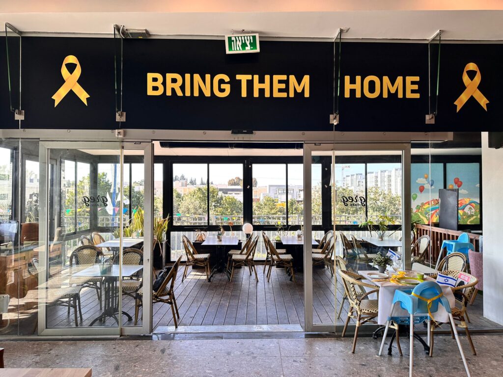 כאות הזדהות עם משפחות החטופים יוצב בסניף שלט ענק עם סיסמת השבת החטופים: BRING THEM HOME (תחזירו אותם הביתה) לצד הסרט הצהוב