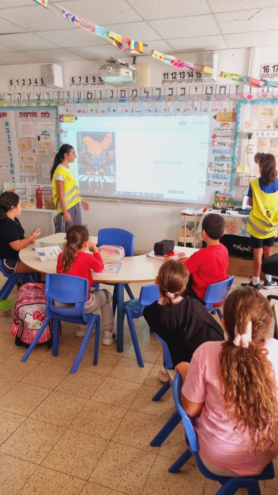 לאורך השבוע עברו תלמידי שכבת ה’, המשמשים כנאמני בטיחות, בין כיתות א’–ו’. הם העבירו שיעורים בנושאי רכיבה בטוחה ועמידה בכללי התנהגות בכביש, תוך שימוש במצגות מותאמות גיל, שיח משותף, סרטונים ומשחקים דיגיטליים.