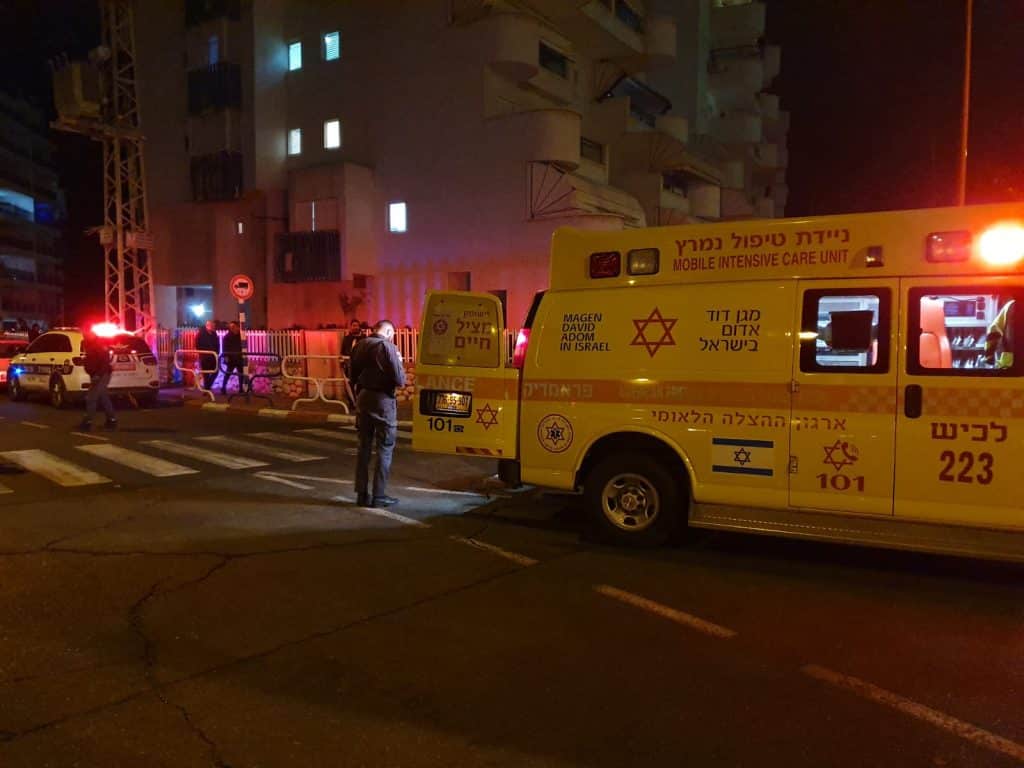 עוד באותו יום בשעה 18:03 במוקד 101 של מד"א במרחב לכיש התקבל דיווח על פצוע בחדר מדרגות בניין מגורים באשדוד. חובשים ופראמדיקים של מד"א מעניקים במקום טיפוך רפואי לגבר כבן 40 במצב בינוני בהכרה. זמן קצר לאחר מכן הודיעו במד"א כי "בהמשך לאירוע באשדוד: חובשים ופראמדיקים של מד"א מעניקים טיפול רפואי ומפנים לבי"ח אסותא באשדוד גבר בן 36 קשה.