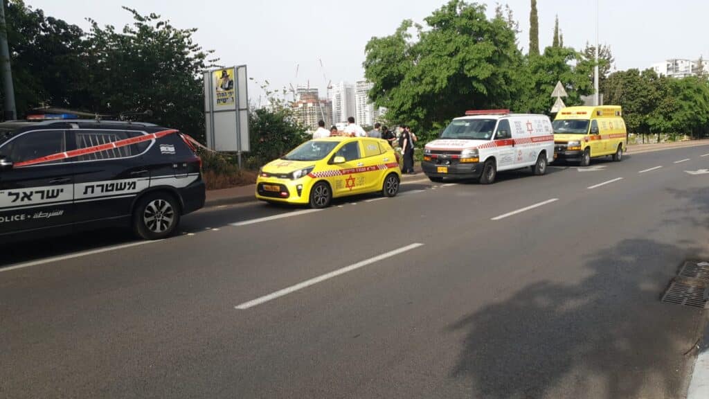 חובשים ופראמדיקים של מד"א העניקו טיפול רפואי ופינו אל בית החולים שיבא בתל השומר, גבר בן 38 במצב בינוני עם חבלות בגפיים ובבטן.