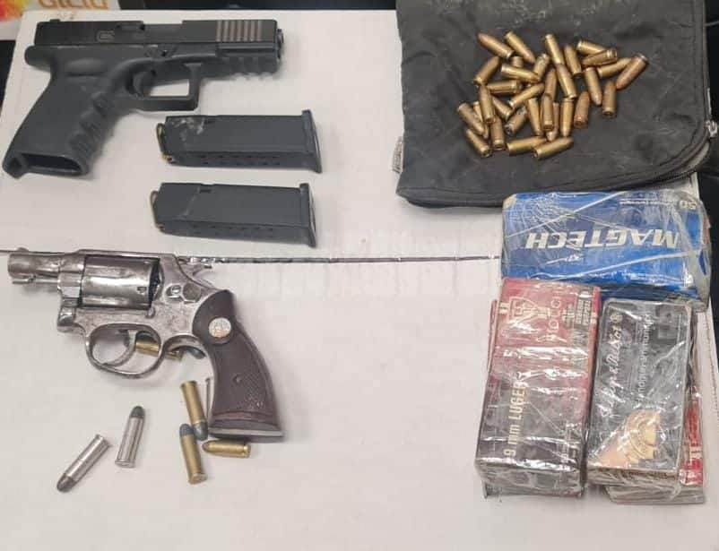 בחיפוש שערכו השוטרים נתפסו במחסן בתוך החניון שני אקדחים- אחד מסוג גלוק והשני מסוג תופי. שניהם נמצאו עם כדור בקנה, 2 מחסניות ותחמושת.