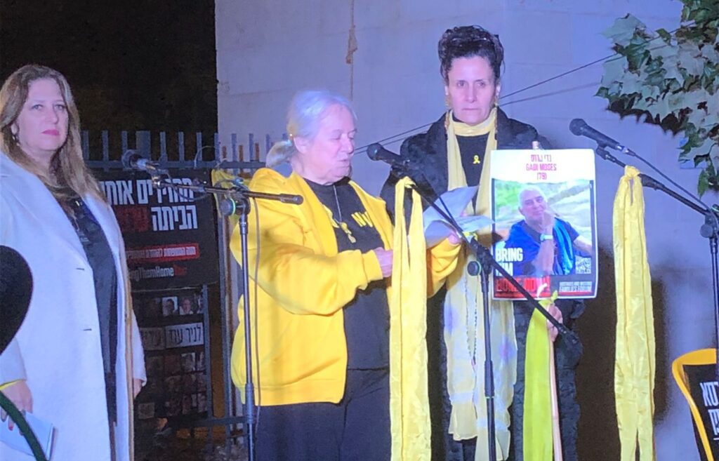שורדת השבי מרגלית מוזס, ששוחררה משבי החמאס לאחר 49 ימים, נשאה דברים בעצרת של קהילות ניר עוז ובארי בכרמי גת, למען החטופים, בהם גדי מוזס, אבי ילדיה:
