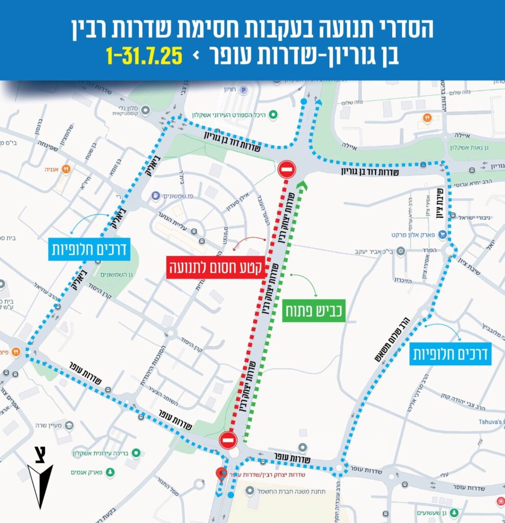 שדרות יצחק רבין (בין שדרות בן גוריון לשדרות עופר) – סגירה מלאה לתנועה בכיוון צפון לדרום