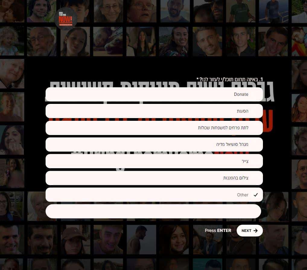 במסגרת המחאות למען החזרת החטופים, מקדמים בפלטפורמות הללו גורמי הביטחון האיראנים ביצוע פעילות אקטיבית של תליית שלטים שנוסחו על ידי האיראנים, צילום מפגינים, מילוי "סקרים" ועוד. לטובת מילוי ה"סקרים", מופנים האנשים לקישורים למילוי טפסי פרטים אישיים ופירוט כישוריהם, הכל לטובת איסוף מידע רב אודות אזרחים ישראלים והפעלתם בשיטוי לטובת ביצוע משימות ביטחוניות.