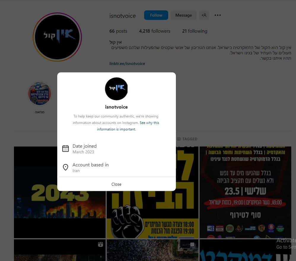 "אגרוף", "חסרות אונים" hasrotonim – אף מופיעות ברשת בגלוי כחשבונות שבסיסם באיראן לצד פלטפורמות. *"ישראל השניה"* *ו"הנוקמים"* – פלטפורמות נוספות שדווחו כמזוייפות ועוינות והחשודות כאיראניות – ארבעתן מתחזות לתנועות מצדדים פוליטיים שונים במטרה ללבות את השיח הפוליטי ולהעמיק את השסע בישראל.