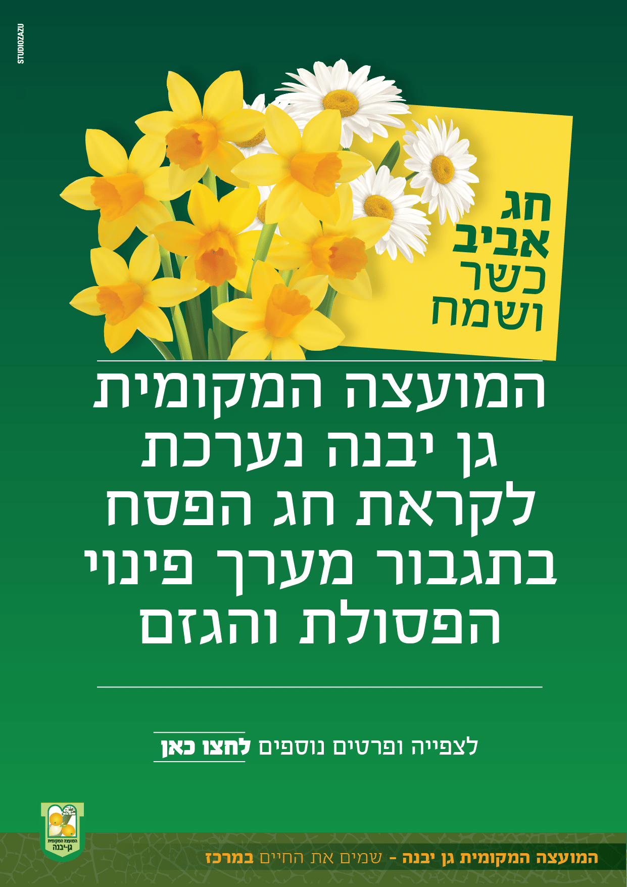 במסגרת היערכות המועצה לקראת חג הפסח, ובמטרה לשמור על ניקיון היישוב, מודיעה היום (רביעי) המועצה המקומית גן יבנה בראשותו של דרור אהרון על תגבור במערך פינוי הגזם והפסולת.