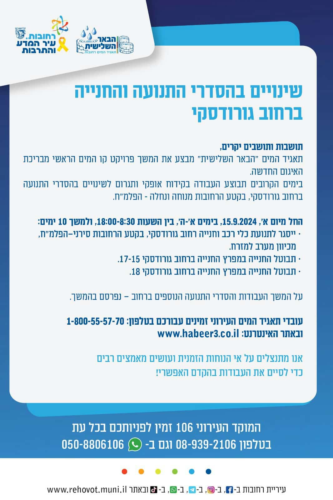 שימו לב לשינויים בהסדרי התנועה והחנייה בהודעה המלאה.