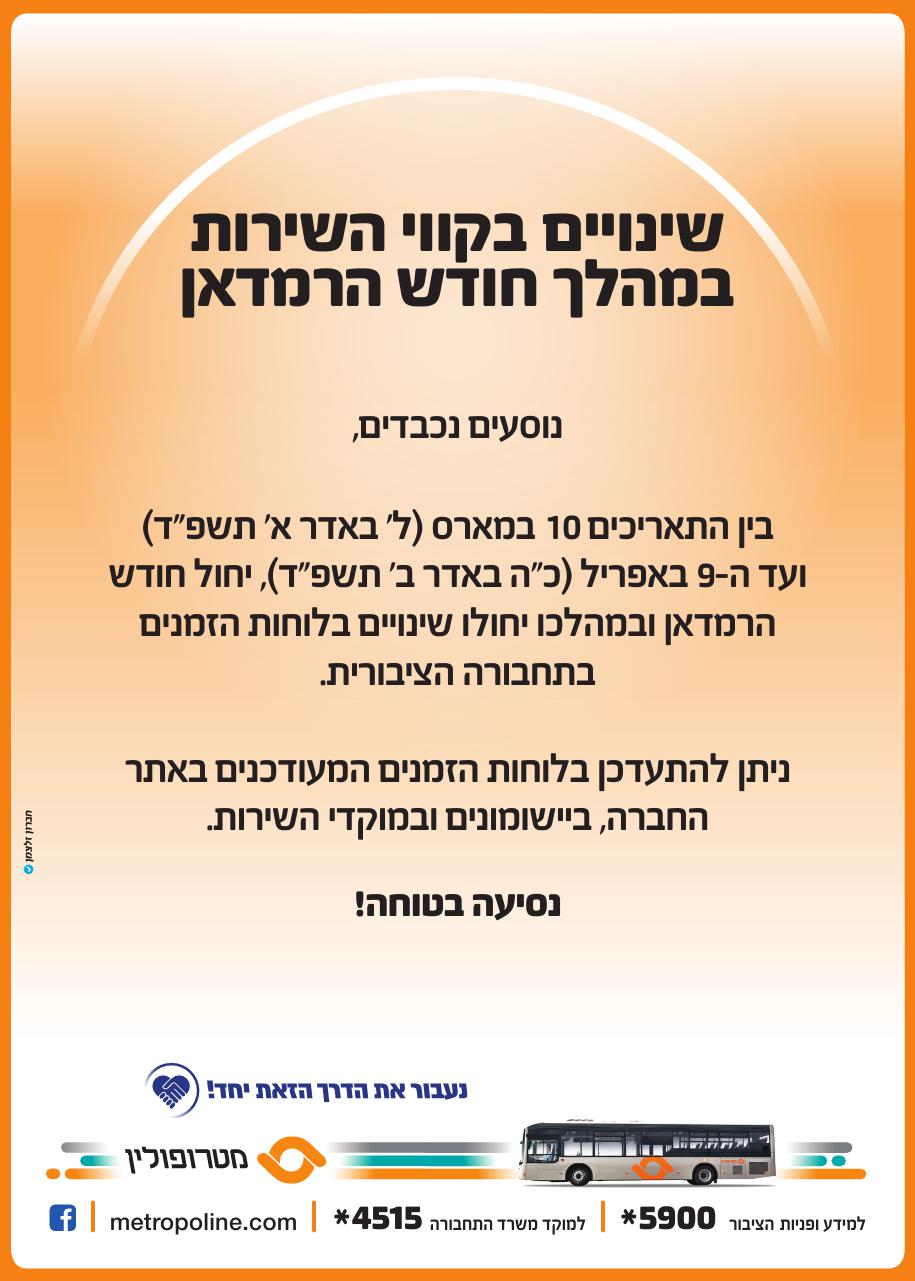 יחול חודש הרמדאן ובמהלכו יחולו שינויים בלוחות הזמנים בקווי השירות.