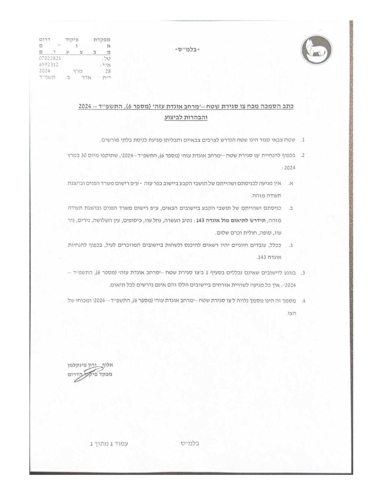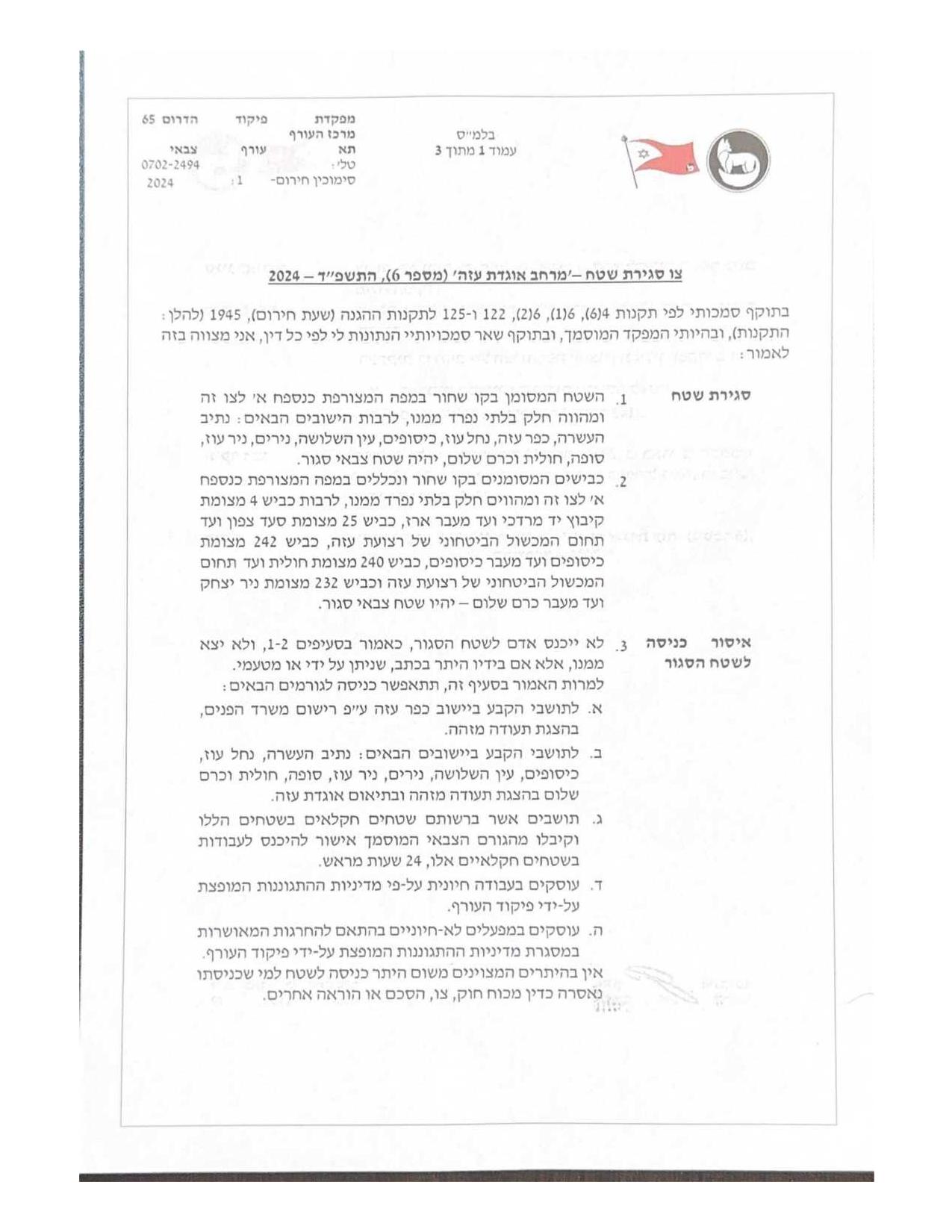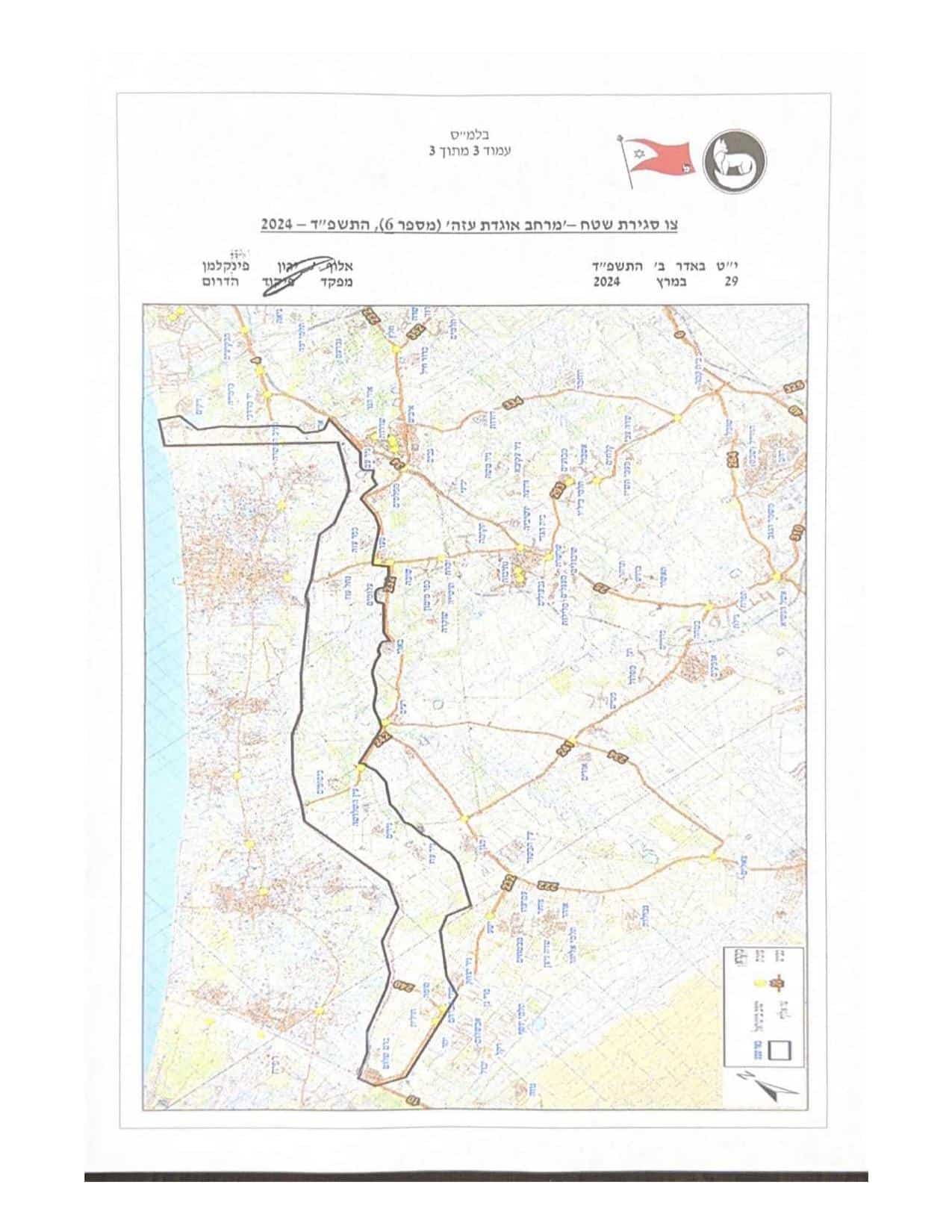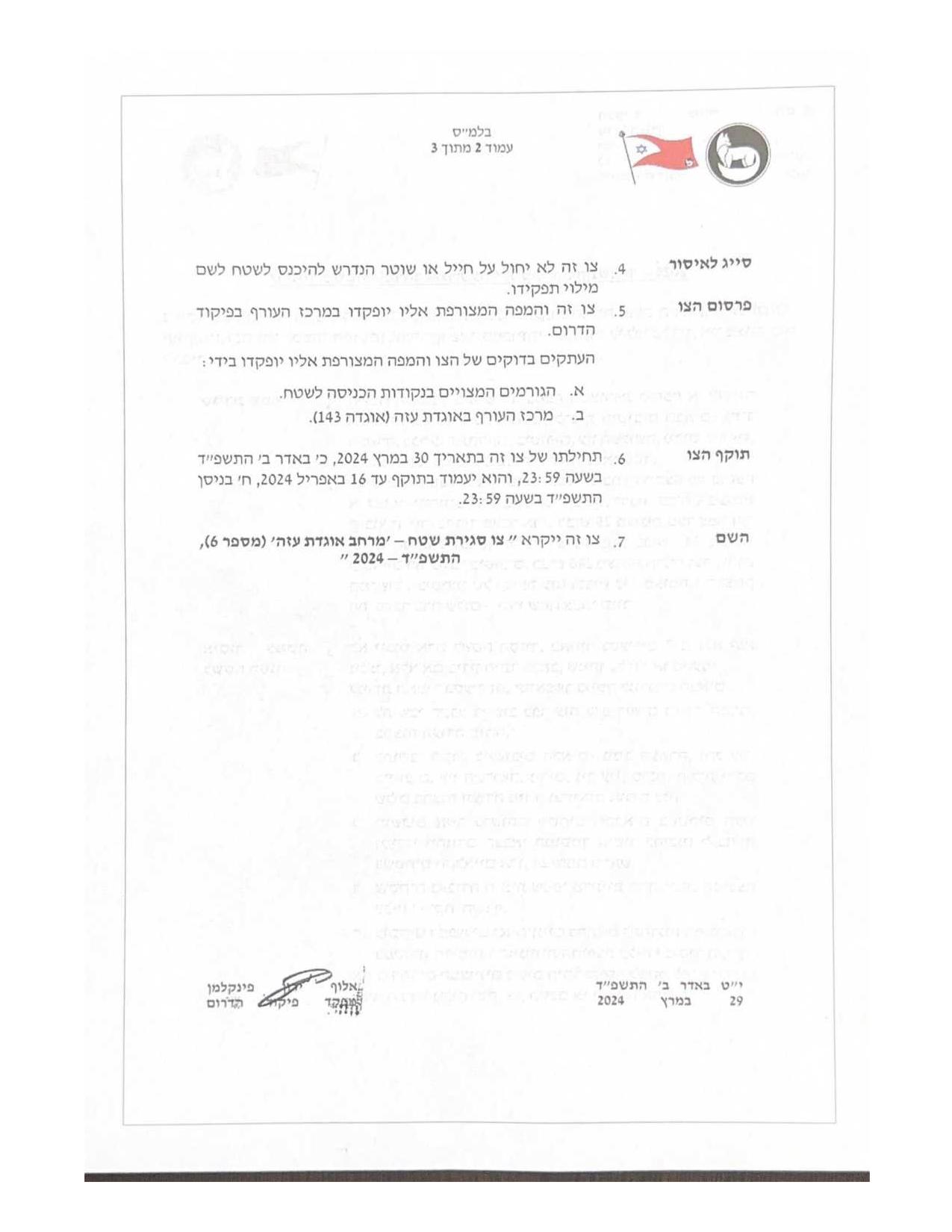 מצורף הצו כפי שנחתם על ידי מפקד פיקוד הדרום: