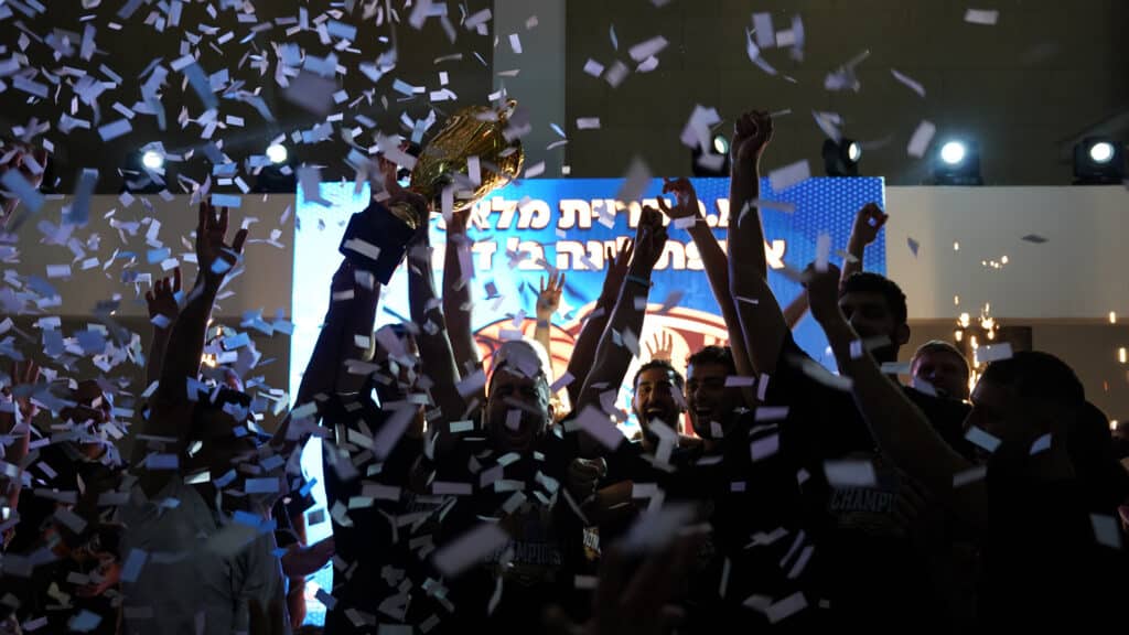 עם שריקת הסיום, הקהל שהיה מאופק במהלך המשחק, פרץ לפרקט כדי לחגוג עם השחקנים את האליפות ההיסטורית של ליגה ב'. רגע לפני הנפת הגביע הוענק תואר MVP של העונה לשחקן גיא נצר שקלע בממוצע כ-20 נקודות למשחק. ה-MVP של המשחק היה אור גבריאל שהציג יכולת מצוינת גם במהלך העונה. גם הגרלות על טלוויזיה 50 אינצ', פלייסטיישן 5, סמארטפון ופרסים רבים נוספים התקיימו בין הנוכחים ביציע.