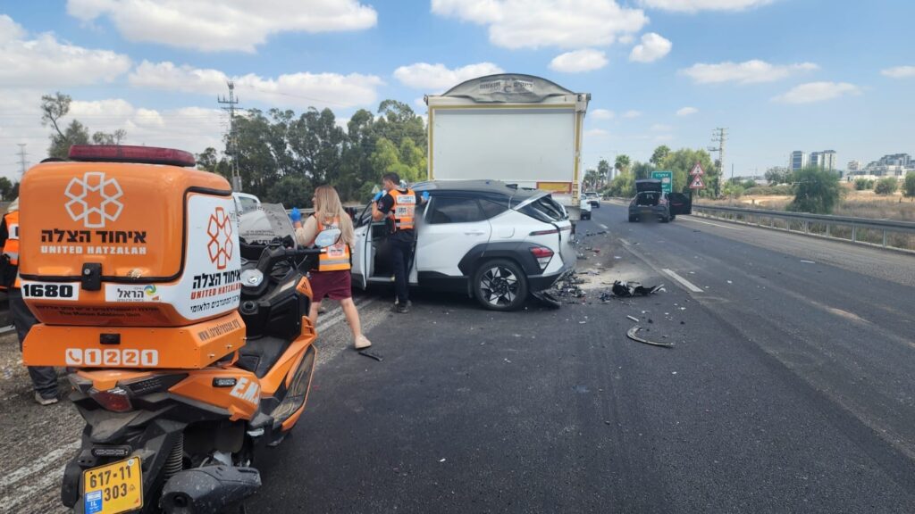 תאונת דרכים אירעה היום בכביש 40, בצומת פלוגות, עם מעורבות משאית ושני כלי רכב פרטיים.