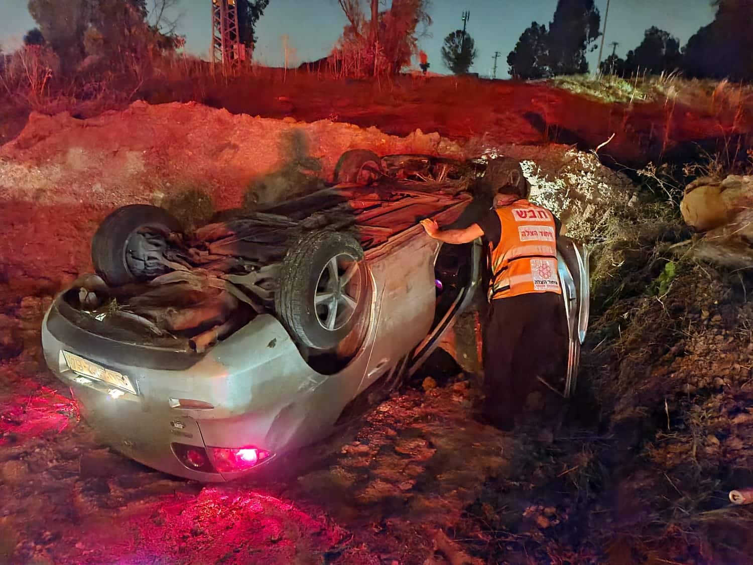 שני נפגעים בעקבות התהפכות רכב בכביש 411