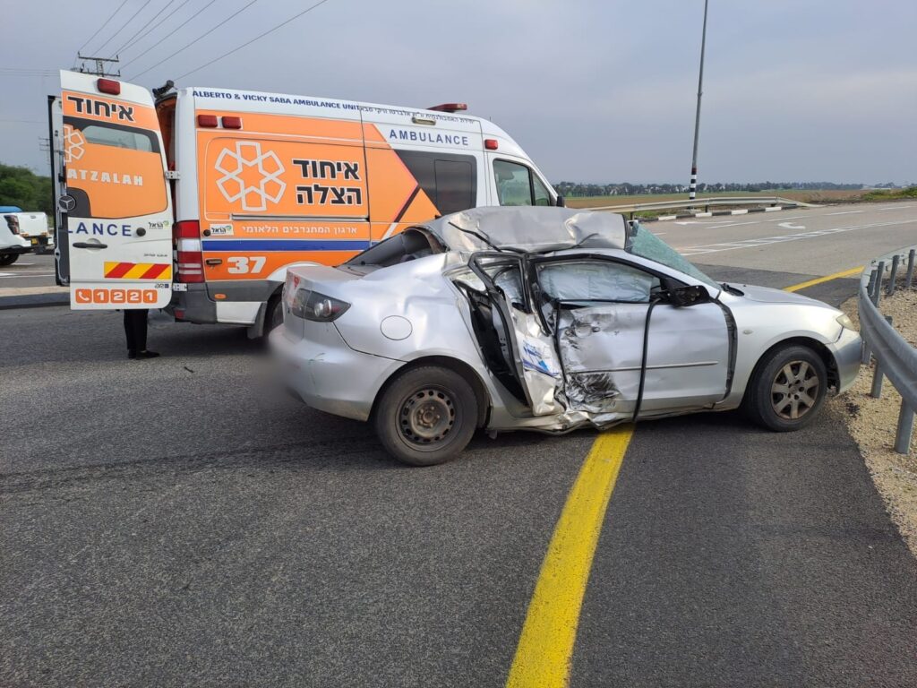 צוותי הרפואה של איחוד הצלה העניקו טיפול רפואי לרוכב אופנוע ולנהגת רכב פרטי שנפגעו בתאונת דרכים בכביש 35 בצומת שדה יואב.