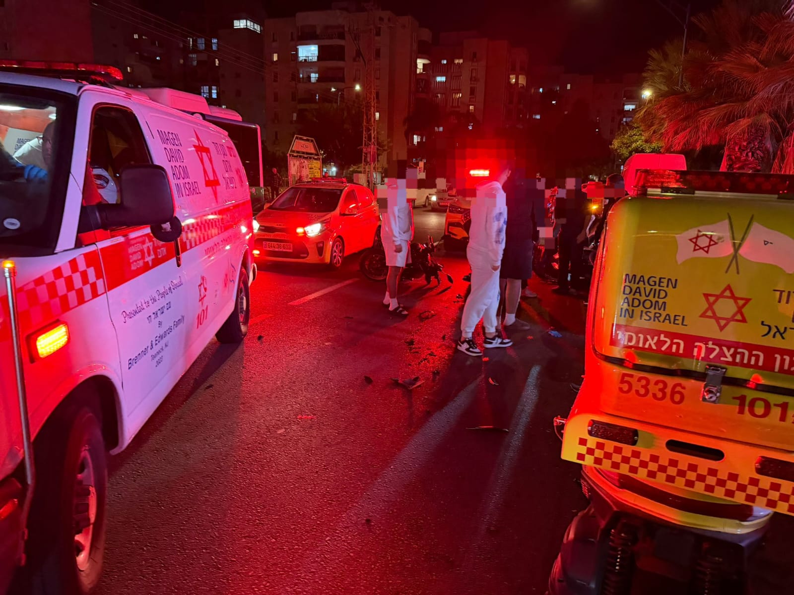 כונני מד"א-הצלה דרום שמחה חסיד ואליעזר שטיסל: כשהגענו למקום הבחנו בתאונה בין שני רוכבי אופנוע, 2 הרוכבים שכבו על הכביש בהכרה וסבלו מחבלות בראש ובגפיים . יחד עם צוותי מגן דוד אדום נוספים שהגיעו למקום הענקנו להם טיפול רפואי ראשוני הכולל חבישות וקיבועים והם פונו להמשך טיפול בחדר הטראומה בבית החולים אסותא בעיר כשהם במצב בנוני וקל .