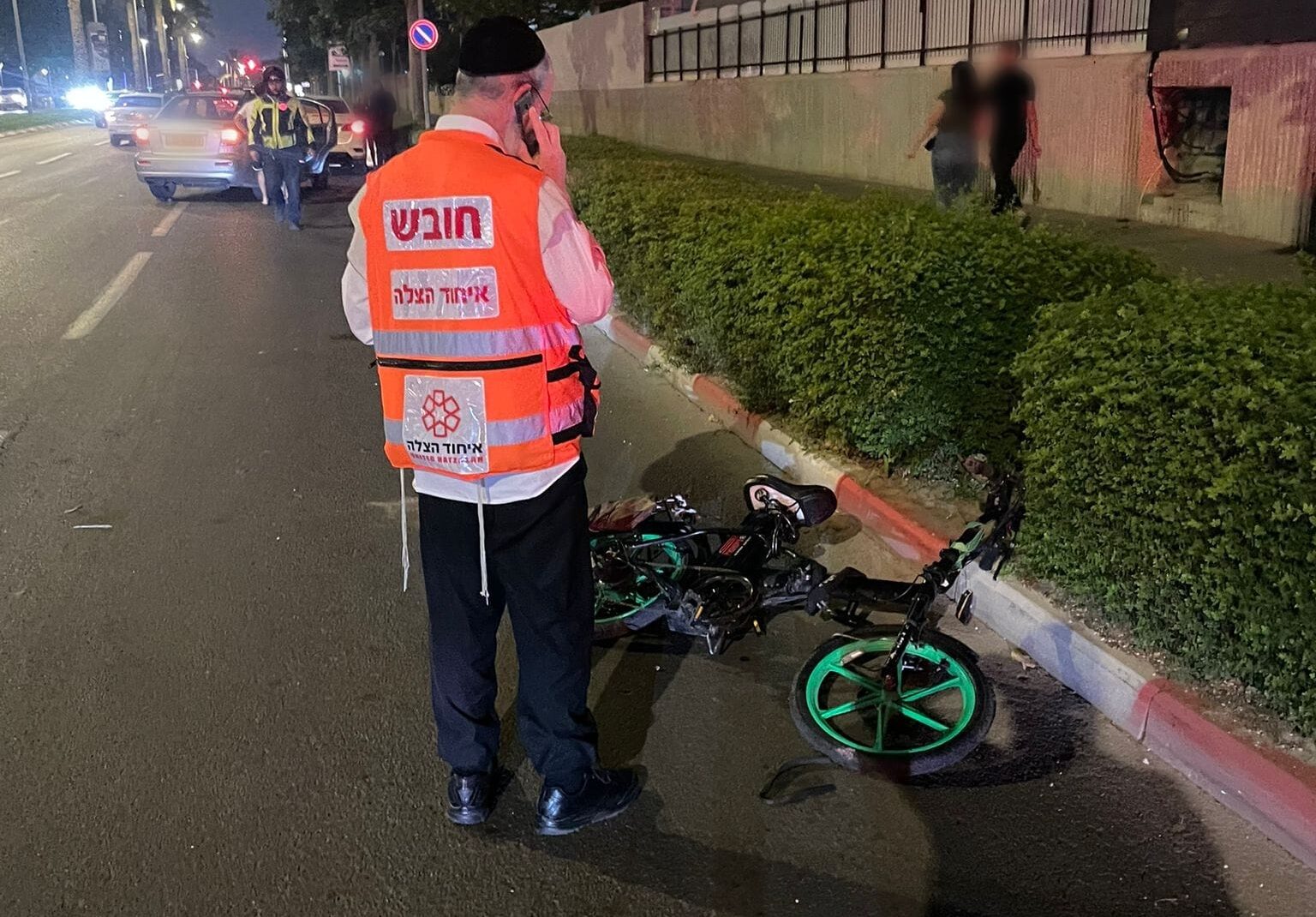 טל וסילוב חובש איחוד הצלה מסר: "מדובר באישה וגבר (כבני 30) שרכבו יחד על אופניים חשמליים ונפגעו בתאונה עם מעורבות רכב פרטי, בסיוע חובשים נוספים הענקנו טיפול רפואי לאישה שנפגעה קשה ולגבר שנפצע בינוני, בנוסף טיפלנו בנהג הרכב הפרטי שנפצע קל".