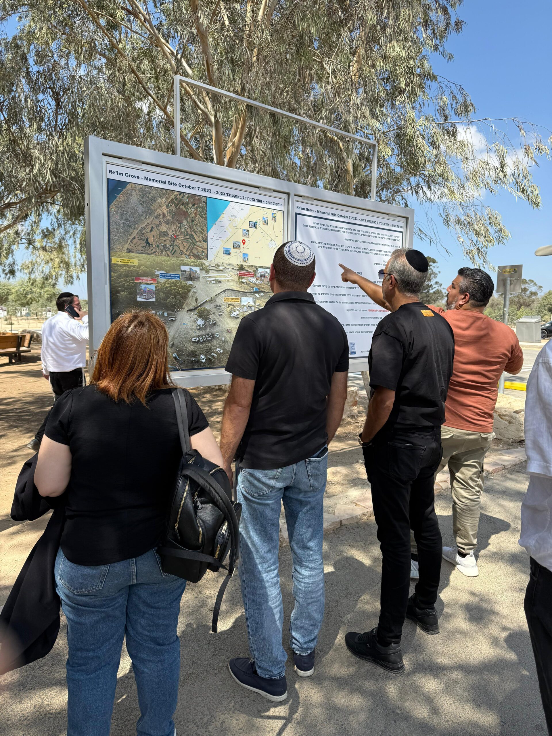 במהלך הסיור ביקרו באתר הרכבים השרופים במושב תקומה, עדות אילמת לטבח ההמוני, ובאתר מסיבת הנובה שמעו את עדותו של תא"ל אורן סולומון, שלחם במקום ב-7 באוקטובר לצד בנו והציל מאות מבלים תחת אש. את הסיור חתמו בביקור באתר ההנצחה בתחנת המשטרה בשדרות, שם פגשו את השוטר רמי כהן, שנפצע קשה בעת חילוץ בנות משפחת סוויסה, ששני הוריהן נרצחו.
