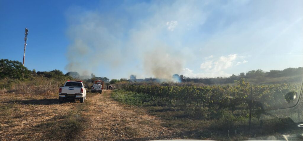 ארבעה צוותי כיבוי פועלים בשריפה בשטח פתוח בישוב כפר דניאל, ככל הנראה השריפה נגרמה מחלקי מיירט שנמצאו בשטח השריפה.