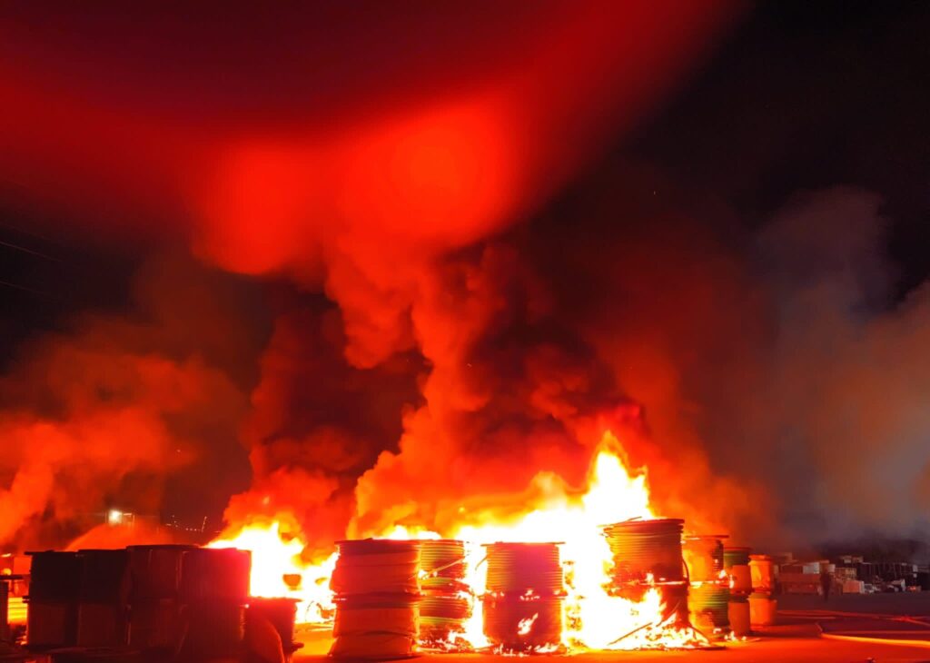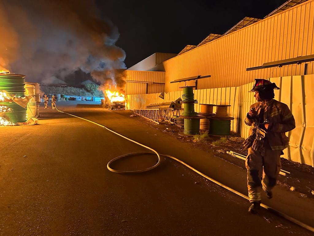 כוחות גדולים של לוחמי אש הוזעקו אל רחוב תמוז, שם ממוקם מפעל איסכור בעקבות דיווח על שריפה שמשתוללת בחצר המפעל.