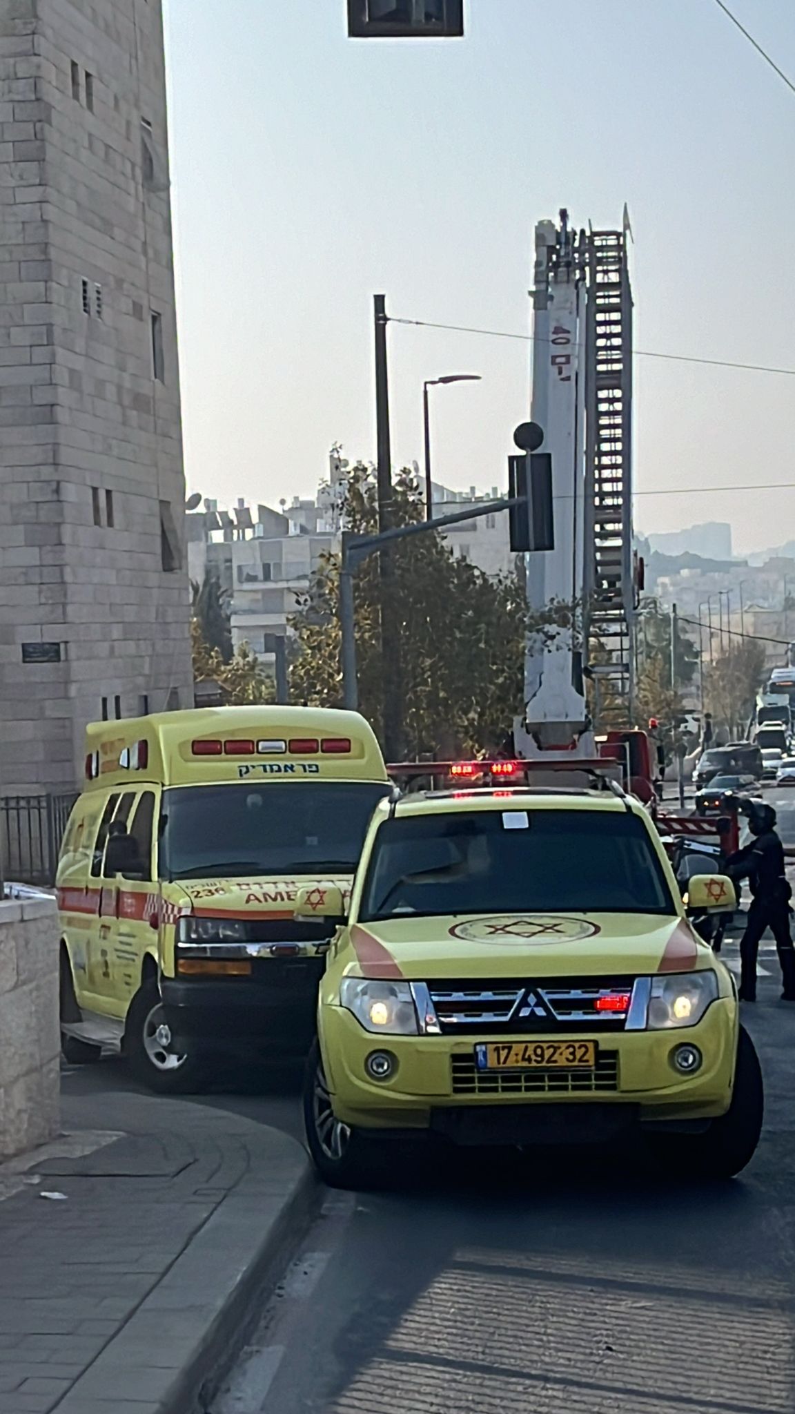 חובשים ופראמדיקים של מד"א העניקו טיפול רפואי ופינו לבי"ח הדסה עין כרם, אישה כבת 70 במצב קשה, עם כוויות ושאיפת עשן.