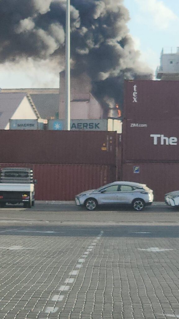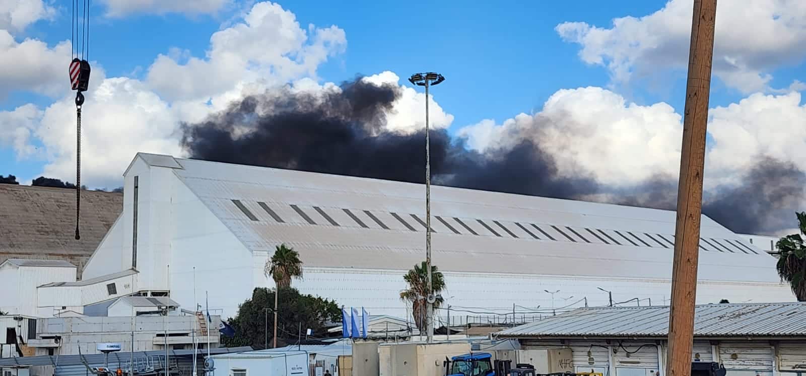 שריפת מסוע פוספטים ותפזורת שחדרה לבניין מיון סמוך, בנמל אשדוד