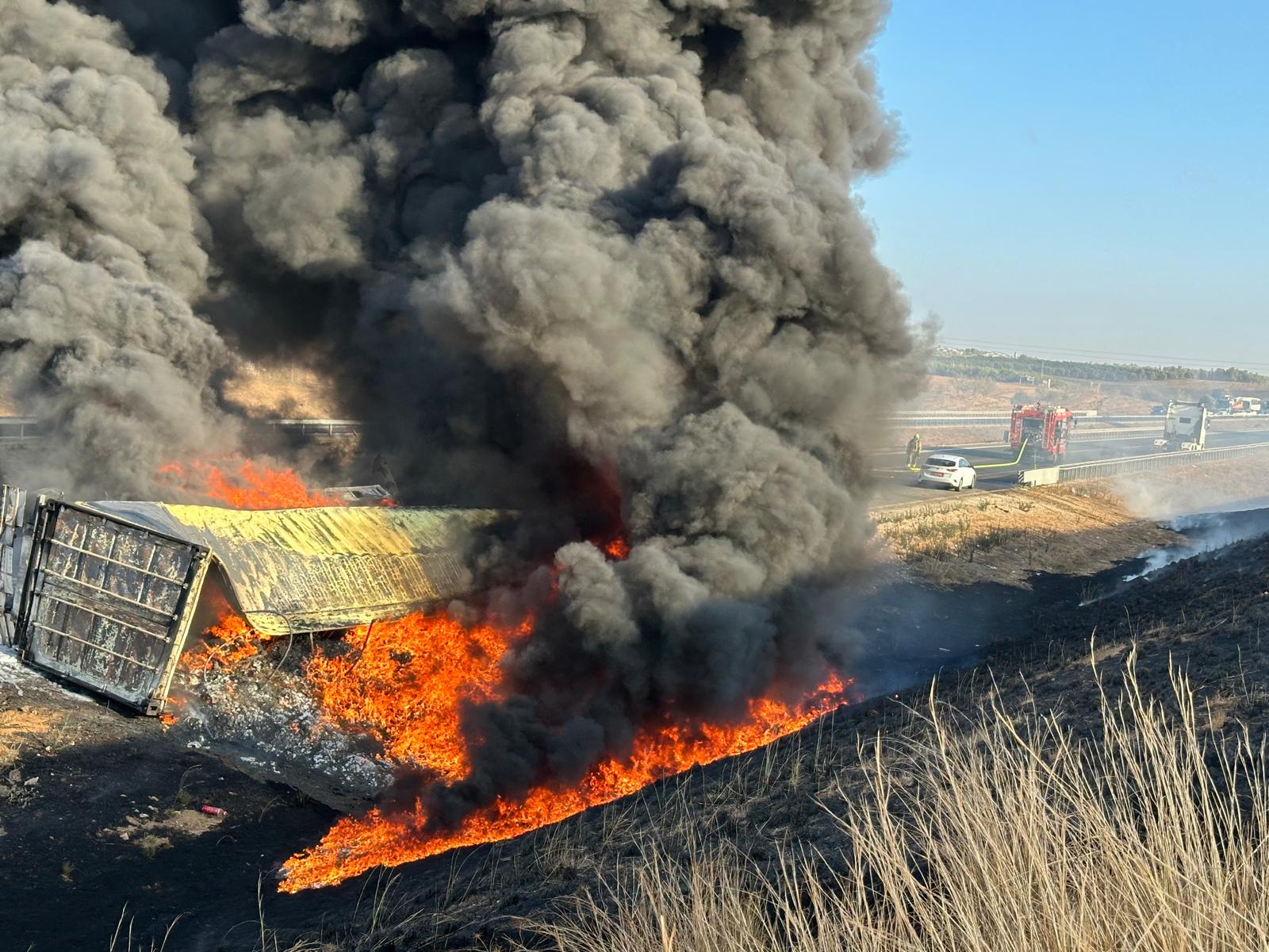 לוחמי האש פועלים לנטר את הסביבה, למנוע התפשטות האש ולסיים את האירוע ללא סיכון לציבור. עקב העומס התנועתי שנוצר במקום, הציבור מתבקש להימנע מהגעה לאזור ולבחור בדרכים חלופיות.