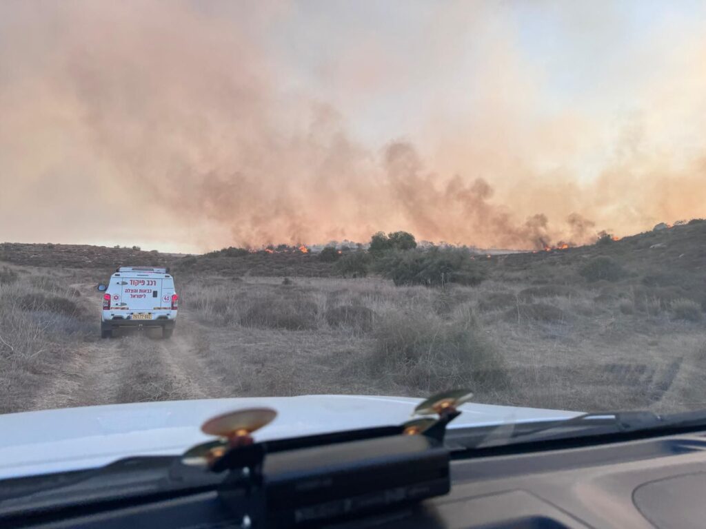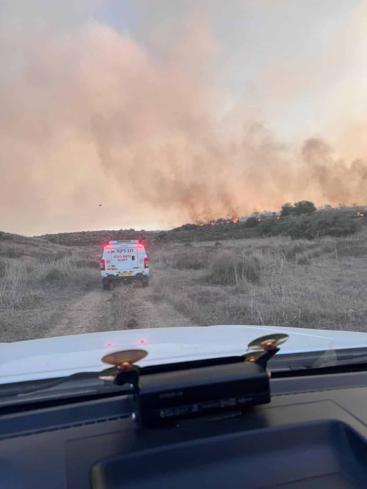 קצין יערות מחוזי נמצא בזירה כולל צוות אווירי ומפעיל רחפן של הרשות.