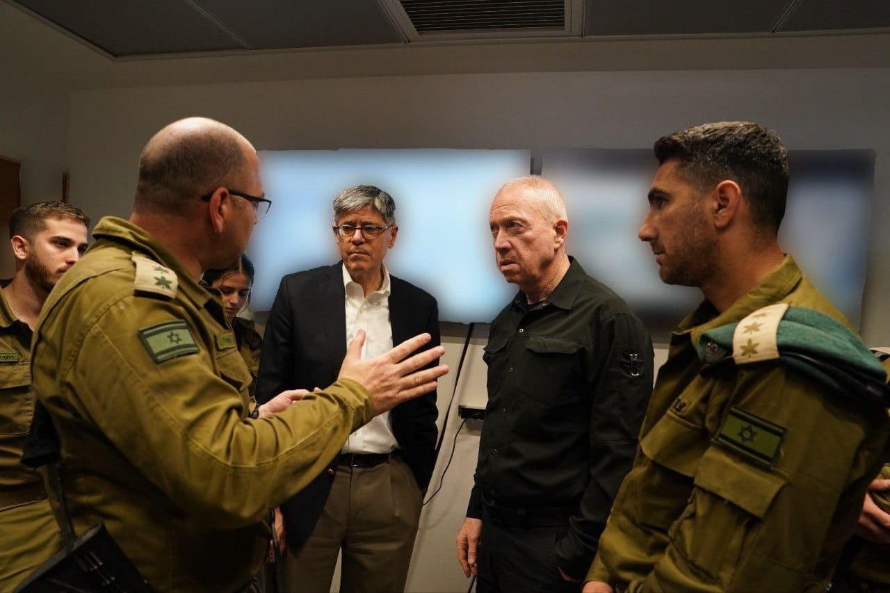 קודם לכן, שר הביטחון הגיע לסיור בחמ״ל שהוקם לתיאום המבצעי עם הארגונים הבינלאומיים, יחד עם שגריר ארה״ב בישראל ג׳ק לו. השניים קיבלו סקירה מנציגי המתפ״ש וצפו בפעולות המתבצעות
