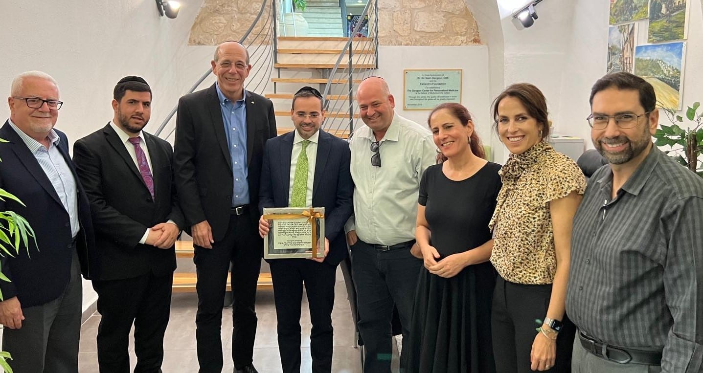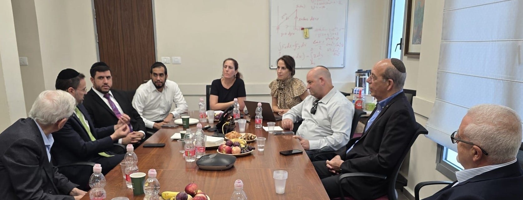השר נפגש עם נשיא אוניברסיטת בר אילן, פרופ' צבן, מנכ"ל ומשנה בכיר לנשיא האוניברסיטה, זוהר ינון, דיקאנית הפקולטה לרפואה, פרופ' אבני, נועם רשלבך ראש מנהל הפקולטה, ראש העיר צפת, יוסי קקון, מנהל ספרה פרופ' נעים שחאדה וסגנית המנהל ד"ר סיון שפיצר במהלך ביקור בפקולטה לרפואה של אונ' בר אילן, בצפת.