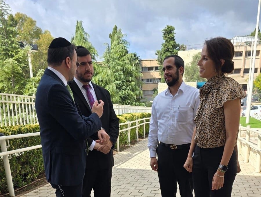 השר נפגש עם נשיא אוניברסיטת בר אילן, פרופ' צבן, מנכ"ל ומשנה בכיר לנשיא האוניברסיטה, זוהר ינון, דיקאנית הפקולטה לרפואה, פרופ' אבני, נועם רשלבך ראש מנהל הפקולטה, ראש העיר צפת, יוסי קקון, מנהל ספרה פרופ' נעים שחאדה וסגנית המנהל ד"ר סיון שפיצר במהלך ביקור בפקולטה לרפואה של אונ' בר אילן, בצפת.