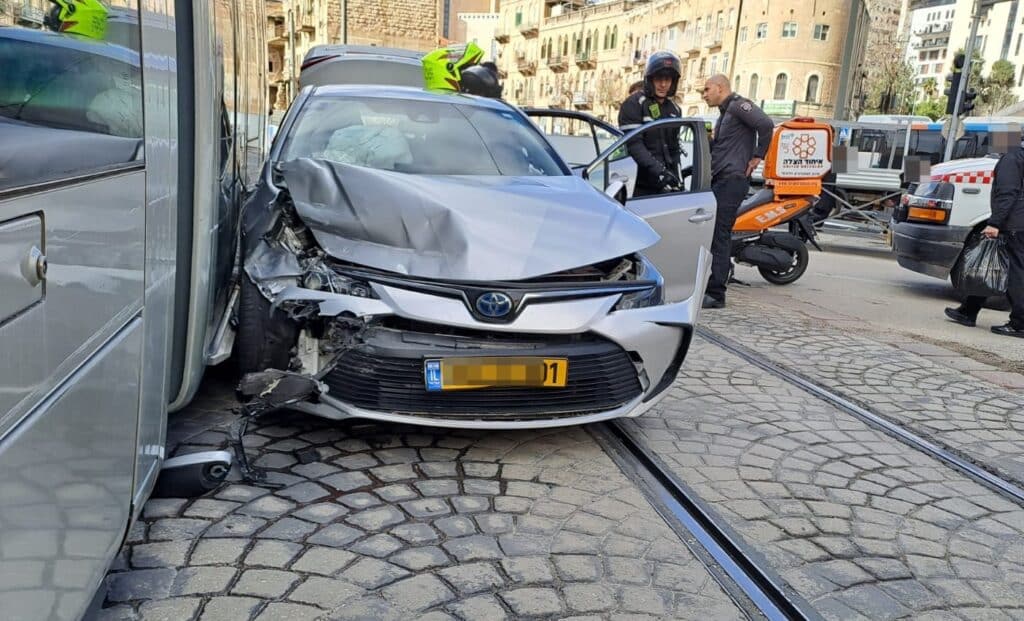 תאונה בין הרכבת הקלה לרכב בירושלים
