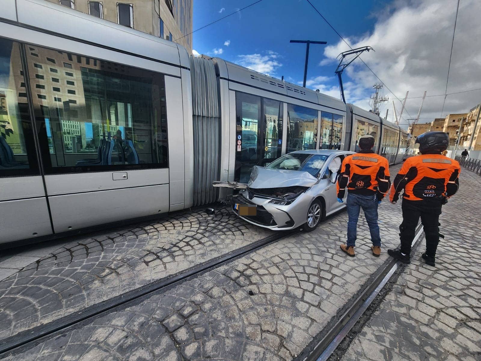 תאונה עם מעורבות רכב ורכבת קלה אירעה ברחוב שרי ישראל בירושלים.