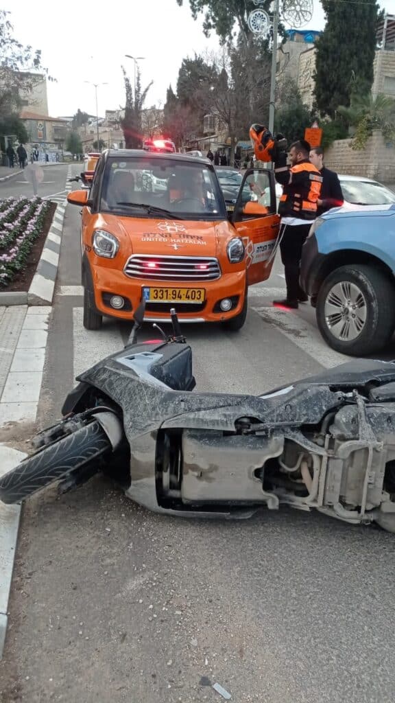 תאונה עם מעורבות רכב וקטנוע אירעה ברחוב משה זקס בירושלים